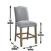 Refined rustic styling brings an elegant casual feel to the kitchen or dining area in the Grayson Counter Chair. The neutral Driftwood finish and ash-gray fabric is accented with a black nail head trim to blend well with many different decors. The 24? seat height on the chair allows a comfortable seat at 36? counters or to pair beautifully with the Grayson Counter Collection. Memory foam top layer and stretchers add to the comfort of the chair whether at a bar or table.