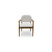 The Norrie dining chair features a continuous frame that flows seamlessly from back to armrests. Crafted from robust rubber wood and upholstered in soft fabric, these chairs exude sophistication as the clean lines make them versatile for various dining settings.
