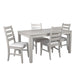 Experience the Pascal Dining Room Set in warm finish, a perfect blend of style and functionality. This set includes a 59-inch long rectangular wood dining table and matching chairs, all crafted from a combination of solid Rubberwood and manufactured woods for exceptional durability. The solid wood chairs are reinforced with side base stretchers for added stability, ensuring they stand the test of time. The set’s light, sophisticated finish is achieved through a meticulous multi-step process that enhances the natural beauty of the wood with rub-throughs and glazing. Each chair is designed with comfort in mind, featuring high-density foam cushions covered in 100% polyester fabric that is both soft and easy to maintain. The roomy dining table offers ample space for six, making it ideal for family dinners, entertaining guests, or enjoying game nights. The Pascal set’s design is versatile, with subtly rounded edges, tapered legs, and elegant ladderback chairs that fit seamlessly into transitional, farmhouse, and contemporary decor styles. This dining set not only provides a comfortable seating experience but also adds a touch of timeless elegance to your dining room.