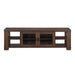 The Arusha TV Stand effortlessly blends rustic style with modern amenities. A rich medium cherry finish is accented by riveted black metal brackets and distressed wood scoring for a beautiful home entertainment hearth that will balance and center any room. The low-profile design places your television at the perfect viewing angle while offering a combination of fixed and adjustable shelves ample space for electronic storage, all while ensuring open sight lines for uninterrupted remote signal access. This stand serves not just as a home for your TV, but as a harmonious centerpiece for any room.