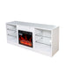 Fireplace TV Stand With 18 Inch Electric Fireplace Heater,Modern Entertainment Center for TVs up to 62 Inch With Adjustable Glass Shelves and Storage Cabinets ( White )