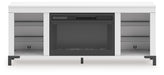 | Details | Made with engineered wood (MDF/particleboard/plywood) and decorative laminate for the right balance of affordability and durability, Matte white finish with subtle replicated wood grain, Decorative laminate replicates natural or man-made material surfaces with consistent color, pattern and texture, Legs with black finish, 4 glass shelves, Fireplace insert and shelves feature color and brightness controlled LED lighting, 3 color settings for synchronized LED lights: blue, red and white, Remote control with LED display, Power cord included; UL Listed, Minor assembly required | |