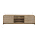 Introducing the Mara 70" TV Console, a fusion of eco-friendly construction and modern functionality. Crafted from durable manufactured wood and adorned with environmentally friendly laminate, this console boasts both durability and sustainability. With its spacious top surface, it accommodates large screen televisions with ease, while shelves offer ample space for entertainment components. Two roomy drawers discreetly store games, controllers, and other family room essentials. The minimalist design, featuring curved drawer fronts and waterfall-style tops and sides, adds a contemporary touch to any living space. Finished in a natural hue, it seamlessly complements a variety of décors. Assembly is a breeze, with easy-to-follow instructions for a hassle-free setup in approximately 45 minutes. Elevate your entertainment experience with the Mara 70" TV Console.