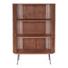 A stunning display for your own arrays. Ideal for your book collection, seashells, or whatchamacallits, this shelving unit is blazed in richly veneered solid walnut with deeper shelves for even those larger Taschen's. Mid-century modern style with a gently rounded form and gated paneling that details its sides and back, with slightly flared steel legs. Practically perfect, this bookshelf is a multi-functional style that works from room to room.