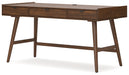 A refreshed take on retro aesthetics. This home office package adds an air of playful simplicity to your workspace, capturing the architectural language of mid-century stylings. Subtle in design, it invites the eye with sleek, open frames. A casual, yet timeless, finish completes this set’s study in form and function.
