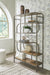 | Details | Shelves made of hickory veneer and engineered wood, Metal frame, Frame with antiqued silvertone finish, 5 fixed shelves with brown finish, Assembly required | |