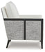 Details Polyester interior upholstery; polyester/acrylic blend exterior upholstery, Reversible seat and back cushions, Solid wood frame in black finish