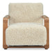 Featuring a solid oak frame finished in a warm vintage stain that highlights the natural beauty and graining of the wood, the Eckersley lounge chair draws inspiration from the past, infusing any space with rustic warmth and sumptuous comfort. While generous in its proportions, the wide, sturdy arm profile is perfectly complemented by the plush softness of faux fur upholstery, offering an irresistibly inviting tactile experience.