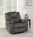The Katrine Reclining Chair showcases the best in manual motion upholstery with this recliner that is sure to become your favorite seat in the house. The Recliner is covered in a luxurious faux-leather that features baseball stitching, padded armrests and a raised, padded headrest for a stylish and comfortable view and seat even when fully reclined.