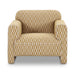 - Geometric pattern with tonal contrast piping & inward rolled arm detail