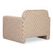 The Leo accent chair is a statement in modern design with its striking form and geometric pattern. This piece elegantly plays with curved and straight lines, as its squared side profile contrasts inward rolled arms and curved back. It offers a sophisticated silhouette accented with tonal contrast piping and fully upholstered legs.
