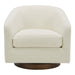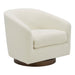 Light and cheerful. Calm and relaxed. The Oscy swivel chair is a cloud of comfort that brings airy energy and convenience into your living room with its 360° swivel, floating base design. Idyllic for a reading nook or as an accent chair, the Oscy creates a chic retreat with vegan shearling upholstery that looks fresh and feels cozy.