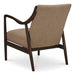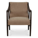 The Yates accent chair's solid oak frame and sumptuous faux shearling merge the coziness of plush upholstery with the timeless beauty of classic craftsmanship. Its deep brown finish enhances the wood's natural grain, offering traditional charm to its slim, mid-century design. The curved, slender arms broaden for restful support, balancing the chair's sleek profile with practicality.
