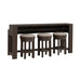 - Includes Console Bar Table & 3 Uph Swivel Console Stools