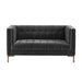 Designed for luxe living, the Isaac gray velvet Loveseat combines sleek lines and sumptuous finishes to create the ultimate opulent effect. This alluring Loveseat follows a classic mid century modern design but updates the style with features such as brass, angular legs and rich velvet fabric. The channel stitching in a vertical and horizontal pattern is an elegant design detail that is sure to draw the eye and attention of onlookers. As engaging as the style itself is, Isaac is also built for everyday family life. The fabric is treated to to help guard against sticky fingers and muddy paws.