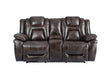 Oportuna - Dual Power Console Loveseat - Dark Brown