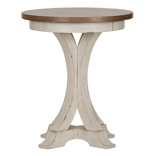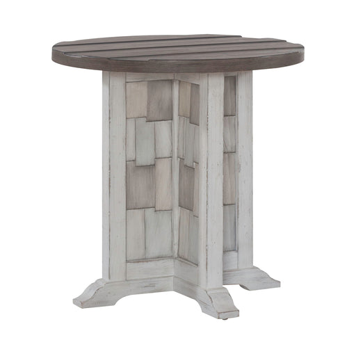 Liberty FurnitureEnhance your space with the Modern Farmhouse splayed leg round end table. Crafted of poplar solids with knotty white oak veneers, this piece featur...