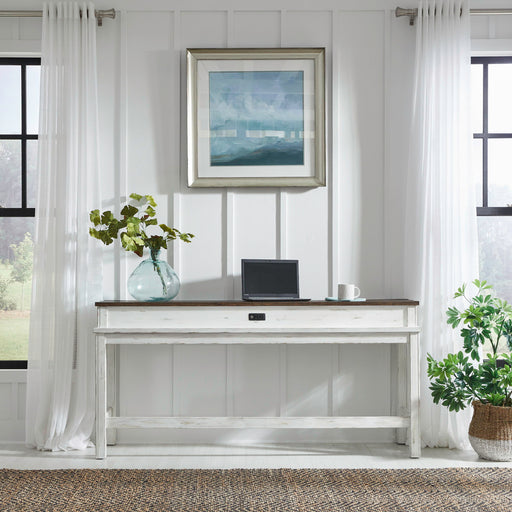 Liberty FurnitureElevate your space with the Modern Farmhouse console bar table. Crafted of poplar solids with knotty white oak veneers, this piece features heavy d...
