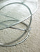 Go space age with the retro-modern Orion Collection! The Orion 3-pack table base and tempered glass table tops combine to create three stunning tables. Includes one cocktail, and two end tables. Cocktail - 48”L x 32”W x 19"H ; End Tables 26" Round x 22" H