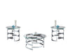 Minimalist but far from mundane, the Steve Silver Tayside End Table adds a space-age-inspired chic to your space - no robot maid required. The simple yet wholly unique design features a coiled base that alternates open space with high-shine chrome plating to create a look that instantly draws the eye.The frame is crafted of durable metal, and the tabletop is crafted of eight-millimeter tempered glass with a beveled edge to both lighten the look and create some handy table space for a lamp or favorite home accent. Pairs with other pieces in Steve Silver's Tayside collection.