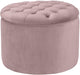 Make storage glam. Beauty is taken to new heights with the storage ottoman. Whether you use it as a foot stool or side table the elegant tufting and rich velvet will make you feel like a royal. So put your things away and look stylish while doing it. Available in multiple sumptuous velvet color options.