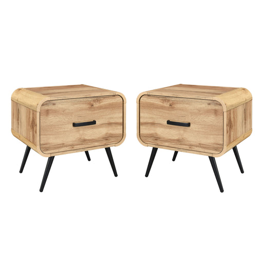 New ClassicThe Rowan One Drawer End Table blends mid-century modern style with practical design. Crafted from eco-friendly manufactured wood in a warm oak fin...