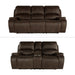The Brookings Reclining Sofa Set is a perfect blend of style and comfort for your living room. Upholstered in soft hand polyester/PU fabric that mimics the look of real leather without the hefty price. The pillowed arms, double-stitched racetrack arms, bucket seats, and plush backrests, all featuring distinctive baseball contrast stitching, create a standout style statement. Enjoy the ultimate comfort with fully upholstered chaise recliner footrests. The sturdy construction of hardwood and manufactured wood frames, coupled with coil spring cushions wrapped in resilient foam and polyester, ensures durability and long-lasting support. The no-sag seat suspension further enhances comfort. For added convenience, the loveseat''s center console offers handy storage for remote controls and built-in cupholders for your beverages. The Brookings set’s leather-look upholstery and neat tailoring lend a comfortable, lived-in ambiance to your home. Experience unparalleled comfort and practicality, making this a must-have addition to your living space.