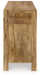 | Details | Made with mango wood solids, engineered wood and veneer, Natural brown finish, Door fronts with high-low block pattern, 4 doors with magnetic push latch function, 2 adjustable shelves | |