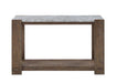 Saw rasp distressing and simulated exposed tenon details blend with an elegant Sintered Stone top in a visually interesting interplay of elegant and casual styling in this Table from the Libby collection.