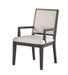 Entertain your family and friends with the bold contemporary styling of Mila. A fashion-forward washed grey finish over hardwood solids combines with bone linen fabric to make a stylish and comfortable Arm Chair. The back of the chair is wood-framed to make it as impressive from the back as from the front and also adds structural support to the chair.