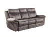The Nashville Reclining Set offers incredible comfort and style in a manual reclining package. The Recliner and Console Loveseat both feature Glider sets that have a comforting gliding motion to add to the convenience of the reclining function. The Console in the Loveseat add valuable storage to any room while the Sofa's Drop-Down Console offers a full work or play station with work surface, USB recharging ports and electrical outlets. The faux-suede cover on all pieces complements any room with its neutral grey cover. Generous arms in an overlapping design add ample padding to complement the lavish seat cushioning for a relaxing reclining experience.