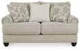 This sofa and loveseat package has an alluring look that's guaranteed to turn heads. Richly textured fabric in a light, easygoing hue is enhanced by even lighter flax peeking through. Distinctive roll arms add a dab of debonair, while indulgently plush cushions cradle you softly. Sit back and relax in comfort and style, with plenty of room to stretch out and unwind at the end of a long day.