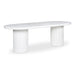 A striking interplay of shapes, the Eris outdoor dining table embraces round forms with a column-like fluted side. The rough concrete texture adds depth and complexity to an otherwise simplistic form, making it a statement piece suitable indoors and out. Exceptionally composed of Glass Fiber Reinforced Concrete (a fusion of cement, glass fiber, and Styrofoam), this table offers unique aesthetics while maintaining its beauty.