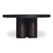 Crafted from outdoor-safe cast aluminum with a sophisticated blackened bronze finish, the Logan outdoor coffee table's round top and three cylindrical legs create a striking silhouette. The interplay of light and shadow across the textured surface adds depth and character as this minimalist piece effortlessly anchors exterior settings as a serene focal point.
