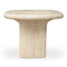The Warby outdoor dining table is designed with a sense of playfulness and organic form and crafted through an innovative water transfer process that patterns onto concrete to give the sophisticated appearance of travertine. This technique provides the piece with the authentic feel of stone while maintaining the resilience of concrete.