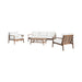 The Ashton Patio Set seamlessly blends durability, comfort, and timeless design to create the ultimate outdoor retreat. Expertly crafted from FSC-Certified Acacia solid wood, this set offers exceptional strength and natural resistance to the elements, ensuring long-lasting beauty and reliability. A meticulously applied light, clear multistep finish enhances the wood''s rich texture and color while adding a protective layer for superior outdoor durability. The sofa is designed for lasting comfort with plush, high-density 12cm foam seat and back cushions, upholstered in exclusive Sundura™ fabric—a solution-dyed 100% polyester that resists fading, mildew, and moisture, keeping the set vibrant and fresh year after year. With clean, straight lines, slatted backs, and a low-profile frame, this minimalist design delivers sleek functionality and modern elegance. The slatted tabletop not only adds a classic touch but also improves water drainage for practical outdoor use. Each piece showcases one-of-a-kind wood grain variations, offering unique patterns and organic details that bring timeless beauty and authentic charm—ensuring no two pieces are ever exactly alike.