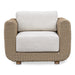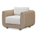 The Soma outdoor accent chair finds a graceful interplay of form and purpose. Its natural finished PE synthetic wicker frame and sunproof, heathered Olefin fabric cushions exude poise and durability. Curved, playful arms and quick-dry foam invite relaxation while ensuring timeless panache.
