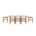 The Wesley Wood Patio Dining Set brings together comfort, durability, and style to create a warm, inviting space for outdoor gatherings. This set includes an extendable dining table and cushioned chairs, all crafted from FSC-certified Acacia solid wood, designed to last through every season. The rich wood grain is highlighted by a clear, smooth finish, adding a touch of natural beauty while standing up to the elements. The table’s classic slatted top not only adds character but also ensures quick water drainage, so it''s ready for any weather. For added comfort, each chair features plush, high-density foam cushions wrapped in Sundura™ fabric that resists fading and moisture, keeping them fresh and vibrant. With the table’s built-in leaf, you can effortlessly extend it from 78" to 96.5", creating plenty of room to comfortably seat up to eight people—perfect for relaxed family dinners or festive outdoor celebrations. The Wesley''s clean lines and gently rounded edges create a welcoming, laid-back vibe that makes every gathering feel like a special occasion.