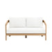The Wesley Patio Loveseat is crafted to bring lasting durability and comfort to your outdoor space. Built from FSC-Certified Acacia solid wood, it offers unparalleled strength and natural resistance to the elements, ensuring it withstands the test of time while retaining its beauty. The light, clear finish enhances the wood’s natural grain and color, while providing added protection. Wrapped in exclusive Sundura™ fabric, the white cushions resist fading, mildew, and moisture, maintaining their fresh, vibrant appearance season after season. With high-density foam cushions providing superior comfort and support, the Wesley is designed for true relaxation. Its minimalist, airy design, complemented by gently rounded edges, brings a modern yet inviting aesthetic to any outdoor setting. The Wesley Patio Loveseat is the ideal choice for those seeking a perfect balance of style, comfort, and long-lasting quality.