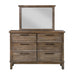The Cagney Dresser Mirror combines durability with timeless elegance, making it a perfect complement to any bedroom décor. Constructed from solid Rubberwood, premium engineered woods, and authentic Acacia wood veneers, this mirror is built to last while maintaining the natural warmth and beauty of the wood. The hand-rubbed, multi-step finish, enhanced by a subtle glaze, deepens the rich tones and highlights the intricate, timeworn details, giving the mirror a sense of heritage and refined craftsmanship. The wide moldings encase crystal-clear, low-distortion beveled glass, providing a flawless reflection that enhances the room's sophistication and elegance. This mirror is not only a functional addition but also a beautiful piece that adds a touch of classic style to any space.