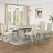 Sophisticated and elegant but with a casual accent, the Garland Dining Collection is built to shine in any environment.A distressed finish blends with a sophisticated modern profile in a relaxed style-blending design marked by clean, crisp lines. The Garland Table comes with an 18-inch leaf that extends the table to 96 inches to seat up to eight comfortably and marries beautifully with the fully upholstered Parsons Chairs in a tightly tailored canvas cover with a brass accent, mixing casual and formal designs in a relaxed but elegant design. Pair these beauties with the Sideboard with a tasteful hardware treatment for an ultra-clean presentation that also offers plenty of hidden storage. Seat all of your family and friends in a comfortable but elegant dining presentation with the Garland Dining Collection