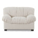 The oversized Halston lounge chair evokes a nostalgic 80s aesthetic through the relaxed, gathered look of its soft, textured woven fabric upholstery. Sink into its plush form, blending vintage-inspired postmodern design with contemporary repose.