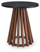 Double down on casual chic with the two-tone look of this end table. With its warm brown and matte black finishes, it reflects your eye for modern design. The trend-right slatted styling on the base brings added charm.