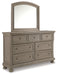 Satisfying your taste for tradition, this dresser and mirror set sports serene sophistication. Forever classic design details—inlaid panels, silvertone patina hardware and bun feet—are so easy to love. Seven roomy drawers keep your wardrobe organized in style. Beveled mirror frame beautifully echoes the dresser’s burnished light gray finish for modern sensibility.