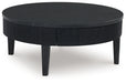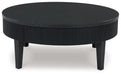 Classic and cool in dark charcoal, this coffee table brings contemporary convenience to your living room. Short on storage? The trendy reeded apron conceals a drawer perfect for remotes, controllers and other entertainment accessories. What a perfect marriage of style and functionality.
