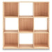 Keep clutter out from underfoot with this nine-cube organizer. The natural finish over replicated ash wood grain is warm and inviting, all while keeping your toys, knickknacks and other items stored away. The perfect marriage of style and function, this organizer is an ideal addition to any busy living space.