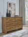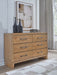 If you appreciate minimalistic style, this dresser is the ideal option. Its soft and simple finish has a laid-back sensibility, blending relaxed contemporary design with a trendy allure. The spacious drawers are accented with stylish metal drawer pulls in a darkened bronze tone. What a delightful addition to your casual-chic decor.