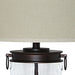 Light waves ahead. Wowing with a clear wave glass design, this table lamp is delightfully chic and unique. Its classic drum shade is perfectly in tune with the cylinder-shaped base.