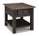 Shabby chic with a hint of down-home country, this rectangular end table is all the talk of today’s design world. Wood grain shows through the weathered gray-brown top in all of its earthy pleasure. Lovely traditional hardware adorns the framed drawer.